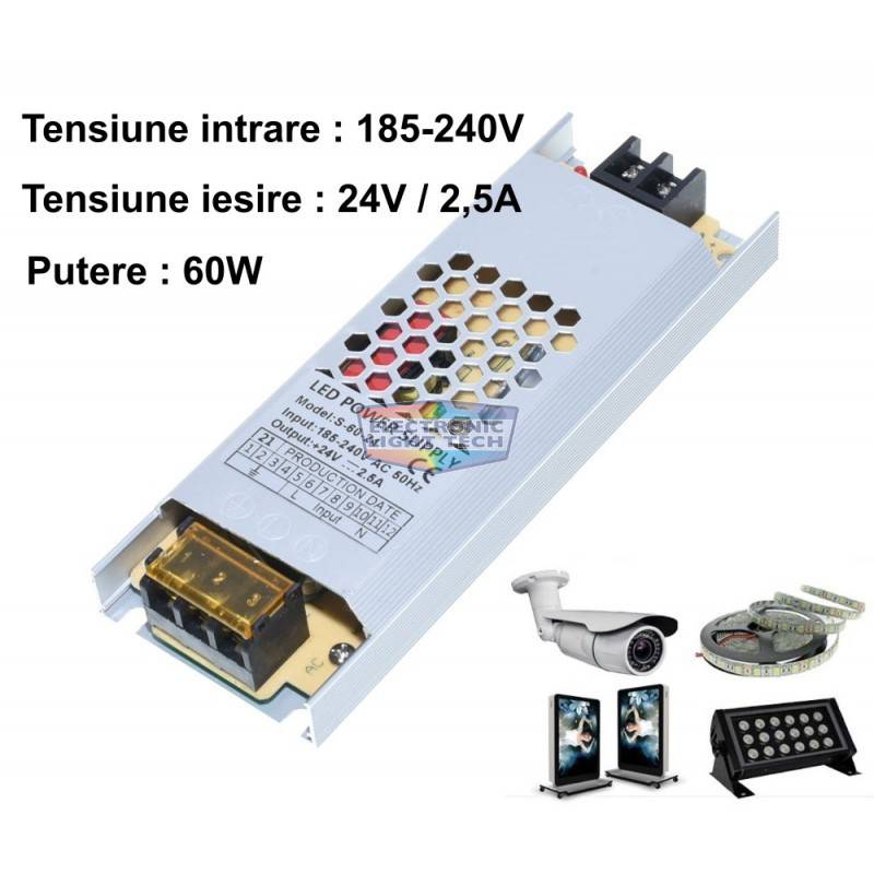 1 x Sursa de Alimentare Slim 24V-2,5A/60W