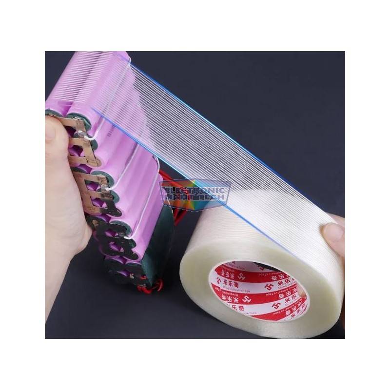 Această bandă adezivă puternică, armată cu fibră, are o lungime de 50 de metri și este ideală pentru fixarea sigură a pachetelor de baterii (18650, 21700, 32650 – Li-ion și LiFePO4). Este rezistentă la tracțiune, nu se rupe ușor și oferă o aderență excelentă pe suprafețe diverse.