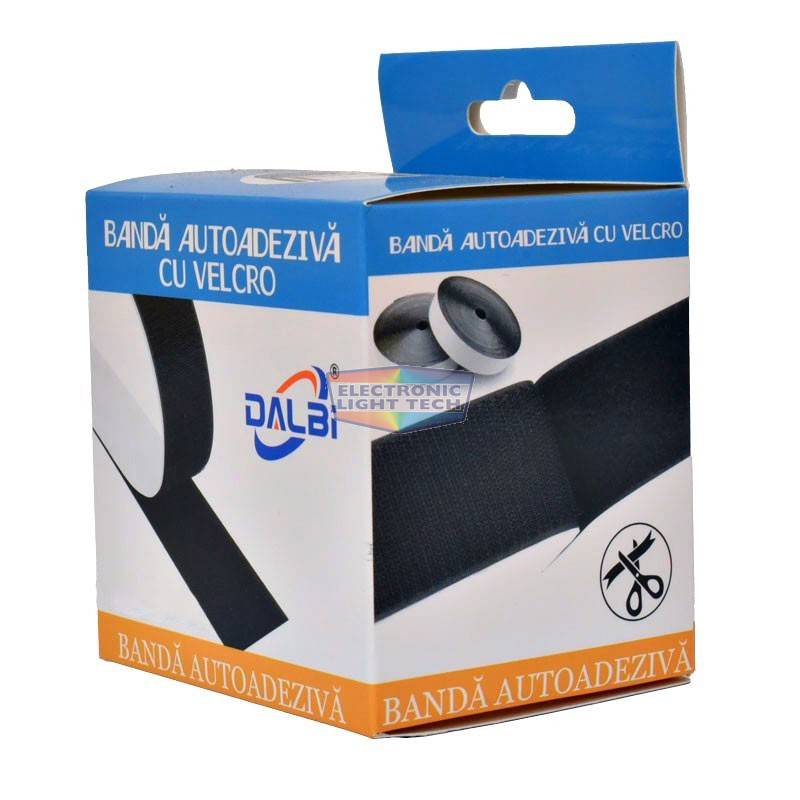 Banda dublă cu sistem de închidere tip "arici" (hook and loop),autoadezivă pe ambele părți.